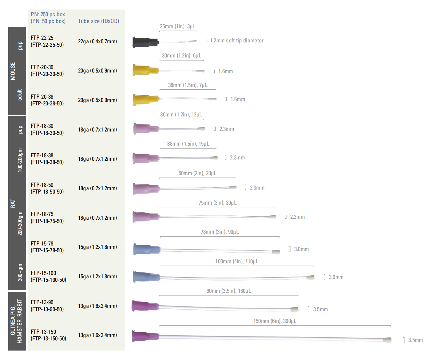 | FTP-22-25-50 | 塑胶灌胃针,22 ga(黑色)×25 mm,灭菌 |