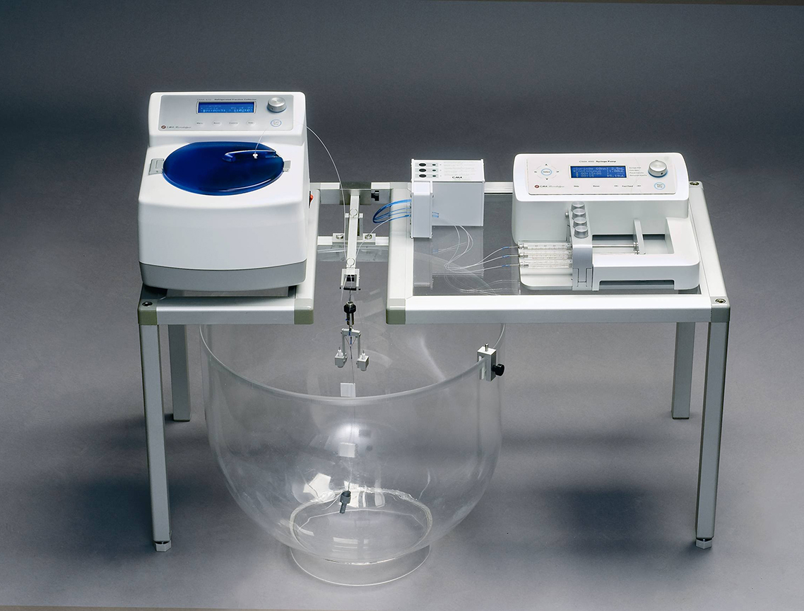 微透析采样系统 (Microdialysis) 是一种从生物活体内进行动态微量生化取样的技术,具有活体连续取样、动态观察、定量分析、采样量小、组织损伤轻等特点。微透析采样系统主要原理是将一种具有半透膜的探针置于实验动物的特定组织中 , 利用泵推送溶液至探针处 , 从而使组织内的目标物质通过半透膜扩散到探针内,以达到从组织内取出需要测量的低分子量物质 , 以便于进一 步的分析。这套设备可对麻醉或清醒的动物进行连续的灌流实验 , 为医学、药学、生命科学等领域的发展提供了新的技术。