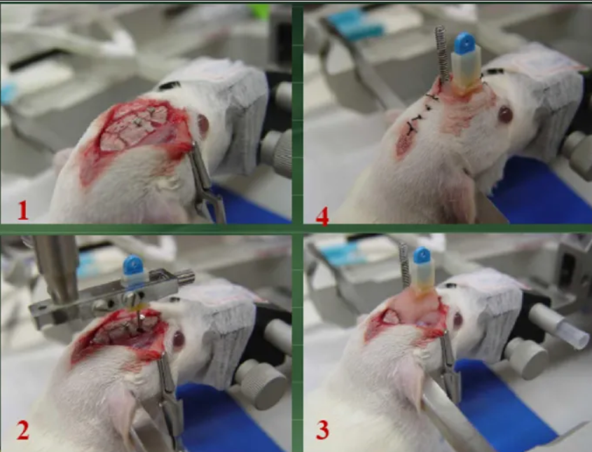 3、实验特点:在植入探针前,我们需要先在动物麻醉状态下植入一个套管,等动物清醒的时候,再把探针通过套管插入动物的脑部。